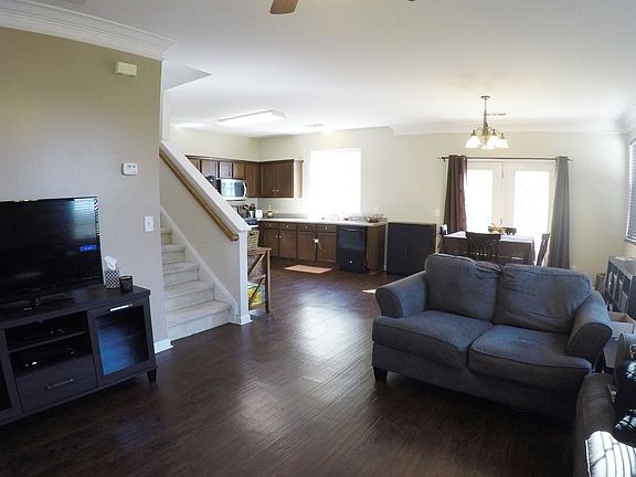 Enjoy sitting on your front porch in this 2 bedroom 2.5 bath home that has a loft area that could be converted to a 3rd bedroom or used as an office. NEW Carpet upstairs. Hardwood flooring and spacious kitchen, with all NEW stainless steel gas range oven and over range microwave, that opens up to living area. High ceilings and wood trim through out. It's at the end of a cul-de-sac in this swim community. Hurry this one won't last.