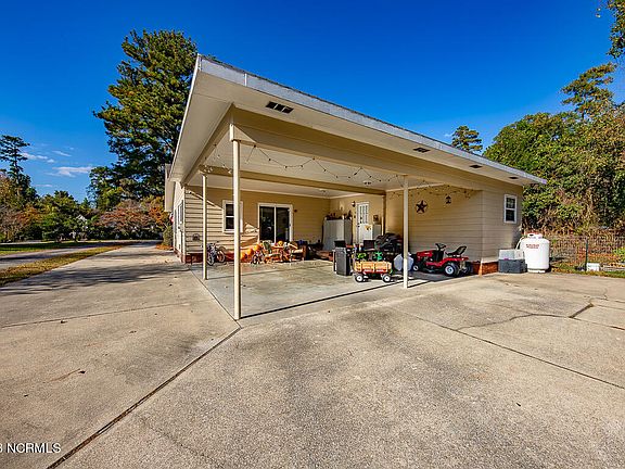 Charming ranch-style retreat in the heart of New Bern that you can be in by the New Year! SELLER IS OFFERING A 2,000 USE AS YOU CHOOSE CREDIT FOR THE BUYERS. This spacious 2200 sqft home offers the perfect blend of comfort and functionality, situated on a generous .67-acre lot. As you approach, you'll appreciate the convenience of a two-car covered carport, providing shelter for your vehicles. Step inside, and a welcoming entryway leads you to a sprawling living area and kitchen. To your right, a versatile space awaits, perfect for use as an office, sitting area, and dining room. The living area boasts plush carpeting and elegant trey ceilings, creating an inviting atmosphere seamlessly connecting to the kitchen which enhances the open layout. The kitchen itself is a culinary dream, featuring a breakfast bar, durable LVP flooring, pristine white cabinets, stainless steel appliance. Enjoy the view of the expansive backyard as you prepare meals and entertain guests. Your primary bedroom is a true retreat, offering plush carpeting, his and her walk-in closets, and an ensuite bathroom for added privacy and luxury. Two additional bedrooms with cozy carpeting and reach-in closets share a well-appointed full-sized bathroom. An extra flex room with LVP flooring, accessible from the carport, adds versatility to the home, serving as a mudroom, office, or additional storage space. The large walk-in laundry room, complete with built-in shelving and a utility sink, provides practicality and convenience, with easy access to the backyard. Out back you will find a large yard backing up to mature trees giving you privacy. The fenced-in area with a raised garden bed beckons to those with a green thumb. NO CITY TAXES! Conveniently located in James City. less than 10 minutes to Downtown New Bern, a short drive to MCAS Cherry Point, and less than an hour to Crystal Coast Beaches!