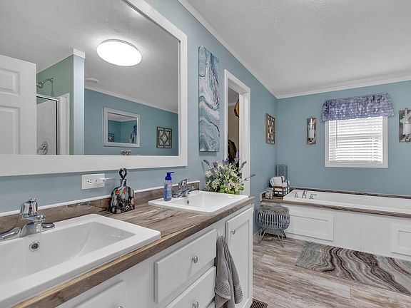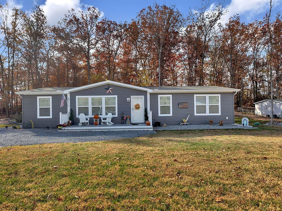 Welcome home to this meticulously crafted 3-bedroom, 2-bathroom beauty, a 2020 Clayton Rutledge 56 (model is the extra wide), nestled on a tranquil 1/3 acre level lot with a perfect mix of open space and lush woods. As you approach, notice the thoughtful details that set this home apart, from the permanent foundation to the charming hand-built 10x12 storage building with a convenient workbench—a true craftsman's touch. Step outside and relax on the covered back porch, where you can unwind and appreciate the beauty of your surroundings. Step inside and be greeted by an inviting open concept layout, where the upgraded vinyl flooring seamlessly flows from room to room. The kitchen is a chef's dream, featuring custom countertops in durable Formica, a practical kitchen island with seating, and top-of-the-line appliances chosen by the seller. The heart of the home boasts added recessed LED lighting, creating a warm and welcoming atmosphere in both the kitchen and the spacious primary bedroom. Speaking of which, the primary suite is a retreat of its own, with a generously sized bedroom, a spa-like primary bath complete with a garden tub and a separate shower, and a walk-in closet that caters to your storage needs. The convenience continues with a dedicated laundry room just off the kitchen, where the washer and dryer are ready to convey with the property. Efficiency meets style in every corner of this home. But that's not all - make this house your home with the option to negotiate on most of the remaining furniture. The perfect finishing touch to this already exquisite property. Don't miss the chance to own this custom-built gem that effortlessly combines practicality, style, and comfort. This is a must-see property to truly appreciate the craftsmanship and attention to detail. Don't miss the chance to make this house your home - schedule a viewing today!