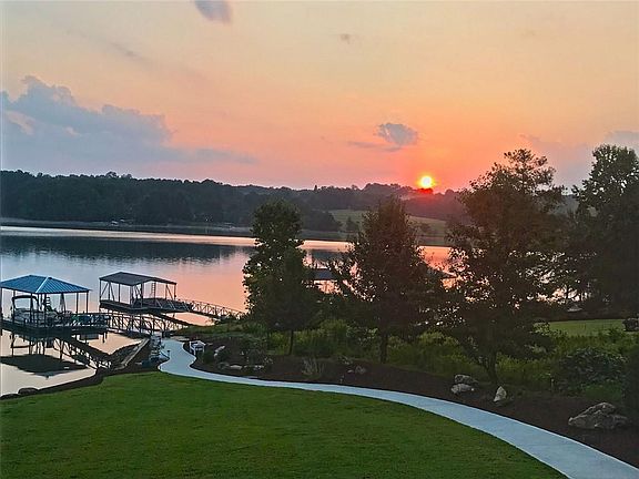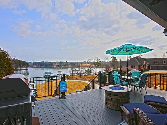 From the moment you drive up to this property you see the stunning large Lake Keowee views, park-like setting and great curb appeal! This home checks ALL of the boxes, is beautifully updated, has 300+' waterfront on over an acre of property and is situated perfectly to capture unobstructed lake views and sunrise/sunset from the many large windows to the back; the mature pines and cul-de-sac offer privacy to the front. The shoreline includes a private cove with block retaining wall, rip rap and the professional landscaping offers an "infinity water" view accented by Palm Trees and low voltage landscape lighting. The 24'x30' almost brand-new extra high hip roof covered dock w/boat lift with Water & full electric has all the accessories (easy climb stairs, flip water bench, fiberglass storage, trash compartment, kayak hooks) and 50' walkway ensures access to deep water. It's on a very gently sloping lot with a 200' concrete sidewalk (5' wide) from the deck to the dock (golf cart parking space below the deck). The 21'x17' maintenance free Timbertech deck has an 8' wide staircase to maximize the lake view, low voltage lighting, and a covered area so you can enjoy being outside in any weather. The deck can be accessed from the dinette, great room and master bedroom. Inside there are 5 bedrooms (Main floor Master / 4 BRs Upper), 3 full baths and powder room, a first floor office, laundry with new washer/dryer while the kitchen has new appliances/tile backsplash, granite, and pull out cabinets, at the center of the house is the 2-story Great Room's entertainment wall with the large gas fireplace, ground hearth and mantel, built in speakers, 65" TV (stays with the house!) cabinets, and custom bookcases. Absolutely gorgeous! The master suite is on the main floor with panoramic views of Lake Keowee. There is nothing better than the morning view of the lake accessed with the "click of a button" using the remote electric operated room darkening blinds. There is a barn door to the recently renovated master bath with dual vanities and tankless water heaters, Edison lights, custom walk in shower with high end tile/design, linen cabinet, and FastTrack closet shelving. Other features of the home include tons of storage, 3 new HVAC units, 42 solar tinted window panes, retractable screen doors, central vacuum, a 12'x20' custom storage/shop building (workbench conveys) with electricity and much more. All just minutes from the hospital, downtown Seneca and Clemson, an hour from Greenville, SC and an easy drive from Asheville, Atlanta or Charlotte. The home is in the Oak Stone Shores subdivision and is in move in condition. Did I mention it's on Lake Keowee! I did, but it's worth repeating, and more importantly, it's worth seeing!