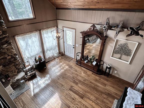 Unassumingly lavish! This large family home is uniquely situated on 3 acres m/l, minutes from Buzzard Roost Marina on Norfork Lake & Walmart! 3800+ square feet, 4 bedroom 3 full bath. Formal living room with cathedral ceilings & grand stone fireplace. Updated kitchen with granite tops & stainless appliances, walk-in pantry and loads of cabinets. Custom made wet bar in family room for superior indoor entertaining. Massive master suite with his/her walk-in closets, walk-in shower & jacuzzi tub. Exterior tiki bar, above ground heated pool and plenty of deck space for all your outdoor entertaining. 4 car garage capacity to park the toys. Make this one your forever home!