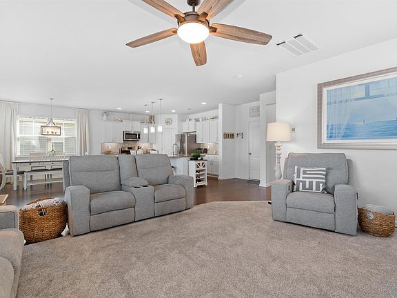 Golf-cart community just one mile from Surfside Beach! This attractive home sits on a rare pond lot within the double cul-de-sac of Ocean Commons Dr., offering added privacy with no home directly in front and a peaceful tree line view. The Mackenzie II floorplan features all bedrooms upstairs with a spacious open living area on the main floor designed for entertaining. The primary suite includes a cozy sitting nook, dual walk-in closets, and a beautifully updated bath. A loft upstairs provides additional living space or the option to create a fourth bedroom. Enjoy wonderful water views from the screened 12x12 porch overlooking the large pond. This move-in-ready home is loaded with upgrades: hardwood floors, granite surface countertops, stainless steel appliances, custom blinds, updated lighting and fixtures, expanded pantry, built-in cabinets, upgraded carpet and padding, hurricane shutters, and a new glass shower door. Exterior improvements include fresh landscaping, a restored lawn, and additional parking. Central air is electric, and the heat is gas, providing efficiency and comfort year-round. Surfside Beach is a true “golf cart community,” allowing you to ride to the beach, Surfside Pier, and local restaurants in minutes. Conveniently located near the Murrells Inlet Marsh Walk, the airport, Market Common, shopping, medical facilities, and all the entertainment the Grand Strand has to offer. With its rare pond setting, thoughtful upgrades, and unbeatable location, this home is a true coastal retreat.