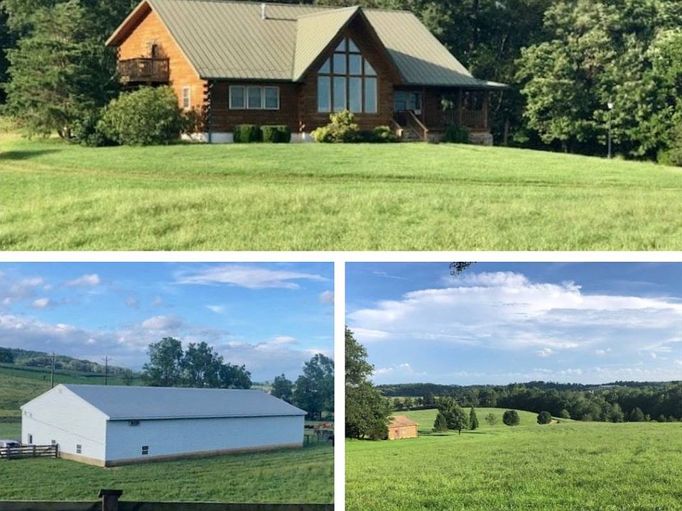 CALL OR TEXT TODAY TO LEARN ABOUT BUYING AT AUCTION! 540-421-5007. You can buy an auction property with financing, find out more at bidnicholls.com Live On-Site Auction w/Live Real Time Online Simulcast Bidding for Your Convenience!! From the Estate of Rolland Hunter Property Tour: Saturday, September 26 @ 12 Noon & Tuesday, October 6 @ 5pm SHARP. Please contact Josh Puffenbarger for more information (540-421-5007). Need to get a mortgage for this property?? Contact Josh Puffenbarger for more information (540-421-5007) Custom built 3 BR/4.5 BA log home on 45.44 +/- acres w/scenic mountain views This home has a majestic hilltop location and measures 3,294 +/- finished sf. above grade and 2,160 +/- sf. mostly finished walk-out basement Large kitchen w/dining area, huge island, Corian countertops, custom cabinets and stainless appliances; open floor plan living/den area w/cathedral ceiling & windows; large office/library; spiral staircase leads to a balcony overlooking the living room; attic storage accessible from upstairs bedrooms; mostly finished walk-out basement w/mechanical room; 2 car drive under garage Three sided wrap around porch w/one section screened in and small porch at upstairs bedroom Floor coverings: Wood flooring and wood type laminate flooring throughout Heating: heat pump w/humidity control and gas furnace backup; Cooling: forced air; gas stove in the living room Well & septic; electric water heater 5,000 sf. shop w/concrete flooring; chicken house; livestock fencing on the majority of the property Pond & creek on the property; open hay ground & wooded area The gorgeous property is conveniently located 10 miles from Bridgewater College, 16 miles from JMU, Harrisonburg & I-81 and 19 miles from Staunton, VA Tax Map: 004-18B (tax records state this home has 3.5 bathrooms, but it has 4.5 bathrooms); Zoning: GA; Yearly County real estate taxes: $2,794.24 (property is currently in Land Use); Home built in 2004; WE GUARANTEE A FREE & CLEAR DEED Only $400,000 Starting Bid!!