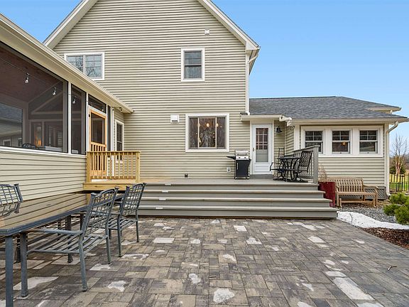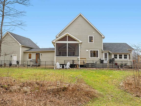 Custom built 12 year old contemporary. The first floor is designed for comfortable living both indoors and out. You can entertain your friends and family in the well equipped kitchen which is open to a bright sitting area with cozy gas fireplace with a stone hearth, complete with Champlain Islands fossils!  First floor Primary Suite boasts 2 walk in closets and generous en suite bath which includes both a soaking tub and large walk in shower. There are 3 more bedrooms and a very large bath on the 2nd floor. You'll appreciate the charm, quality and custom features throughout. Solar panels (2023) help keep electricity bills low.Gorgeous hardwood floors, and an abundance of storage. There are beautiful perennial gardens and even a grape arbor. The current owners established trails in the wooded back area. In warmer weather enjoy the new screened  porch, deck and patios one with a stone fire pit! Screened porch is insulated (roof, floor and sidewalks) for easy conversion to year round space. All this in a location close to shopping, restaurants and Indian Brook Park. Truly a one of a kind home.