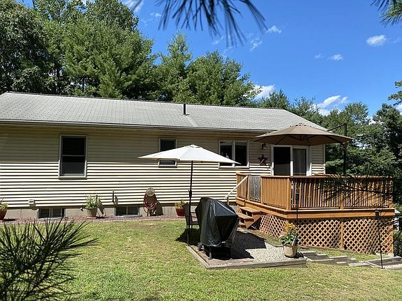 Move-in meticulous, this home will be sold with a new roof on the house and the shed, plus a new kitchen range! Sized just right for downsizing or first-time homebuyers. Hardwood in the dining room and hallway, gives way to two bedrooms with good storage and w/w carpeting. The perfect kitchen with a dining area is super cheerful with lots of natural light. An island of ample size makes being in the kitchen a pleasure, OR - Grill your dinner out back on your gorgeous deck. The fenced front yard is an excellent added value for the pups or little ones, and you can watch the activities from your nice front porch. Set back up and off the road, only a few minutes from the Mass Pike and Shopping Plaza. Walk through the woods, or just a few steps from the bottom of your driveway and you'll BE IN BURLINGAME PARK, for nature walking, ball games and picnics. This is the one. The one you've been waiting to hit the market. Finally - move-in condition, and affordable. Call Today!