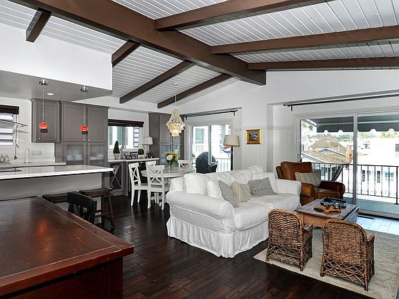 205.5 Onyx Upper Back Unit: This spacious upper unit is like no other. It has been remodeled and updated with the latest comforts and bodes modernity. Lovely hardwood floors throughout with 3 bedrooms and 3 baths, Stainless appliances adorn the gourmet kitchen, vaulted living room ceiling, balcony with retractable awning. This unit is bright an airy and comes with one garage space and laundry located in the garage. Its location is close to Marine Avenue and the Bay Front. Don t miss out on this opportunity. Offered at $4700. Sorry no pets. Available June 1st. Showings, Monday Saturday 9:30am 4:30pm, Sundays 10:30am 5pm. Tenants in place and require 24 hour notice. Square footage is estimated. Owner pays water/trash