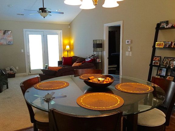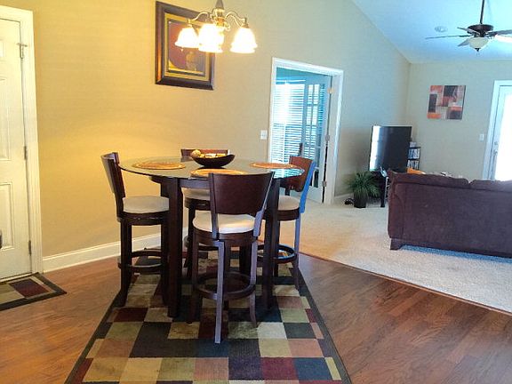 Wonderful stone front Madison plan end unit townhouse in Whatley Place! Great open floor plan with hardwood floors in Foyer, Kitchen, and Dining Room. The kitchen features a smooth top range, built-in microwave, dishwasher, and breakfast bar opening to dining room with refrigerator negotiable. The living room has a vaulted ceiling! Master suite with tray ceiling and both bedrooms have walk in closets! Laundry room and bathrooms have ceramic tile floors. Enjoy the larger fenced yard, landscaped, sprinkler system, storage room, and patio for grilling!