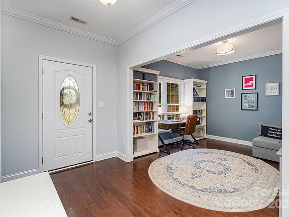 This 3-bedroom, 2-bath home sits on a spacious 1-acre lot and offers a desirable F.R.O.G. (Finished Room Over Garage) floorplan with a bonus room and dedicated office space. The great room features tall ceilings and a cozy gas fireplace, creating a warm and inviting atmosphere. The kitchen boasts custom-built wood cabinets, granite countertops, stainless steel appliances, and hardwoods flow through the kitchen, great room, dining room and halls. Enjoy peaceful rural living with a covered front porch and a private backyard with an expansive deck that backs up to trees—all in a neighborhood with no HOA! Neutral paint throughout provides a move-in-ready feel. Conveniently located within 15 minutes of Field Day Park and Lake Wylie grocery stores, shopping, and dining. Zoned for award-winning Clover Schools. Don't miss this gem—schedule your showing today!