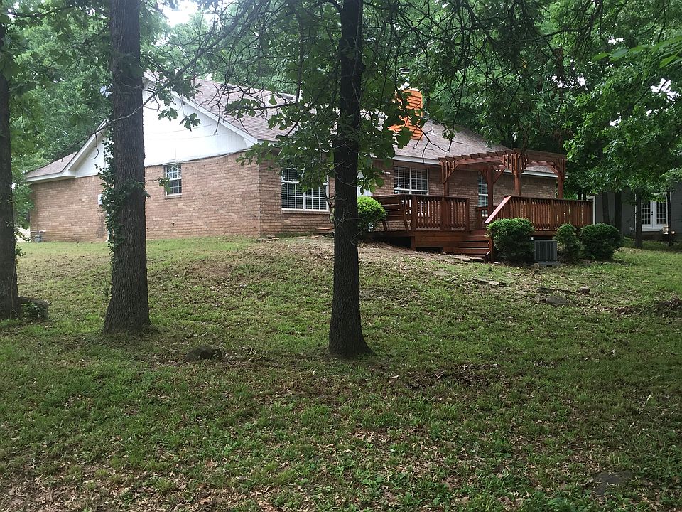 This home is situated in a very lovely neighborhood. The surrounding homes have nice curb appeal. The master bath has a double sink and all the bedrooms have walk-in closets. All the cabinets are oak and the fireplace mantel is oak with oak built-in shelves and cabinets. There is a large deck overlooking a sloping back yard. The home has been completely redone. Almost all new.