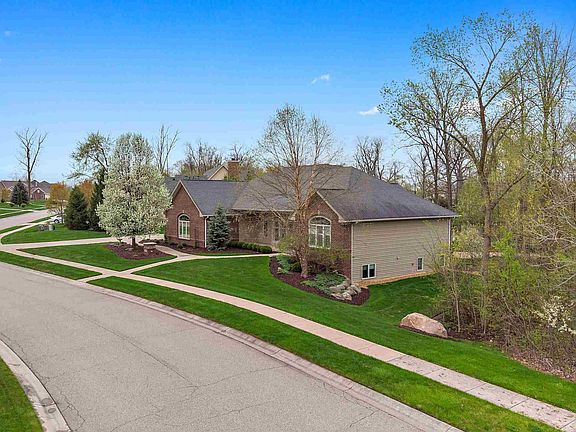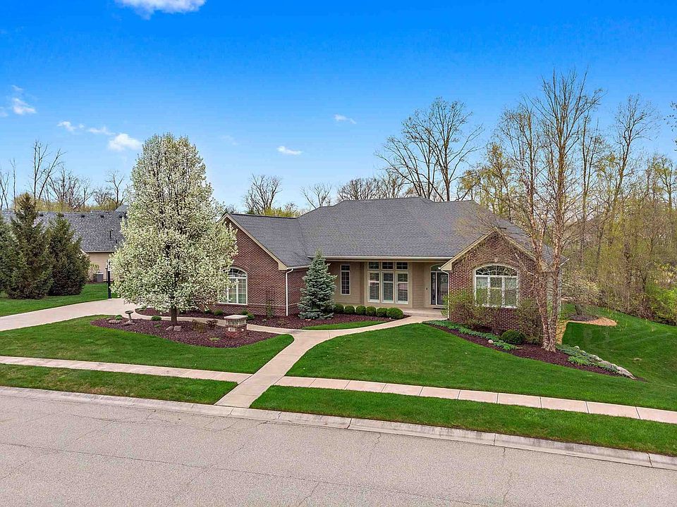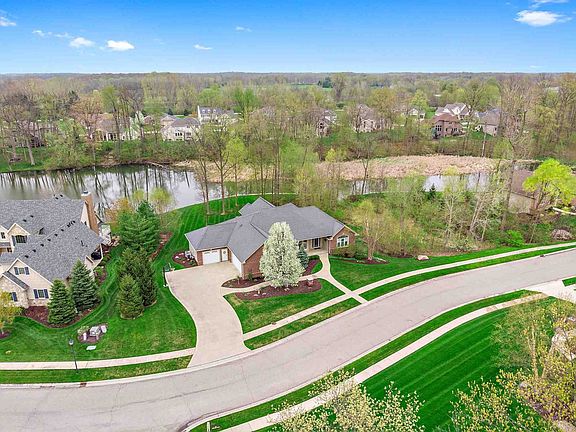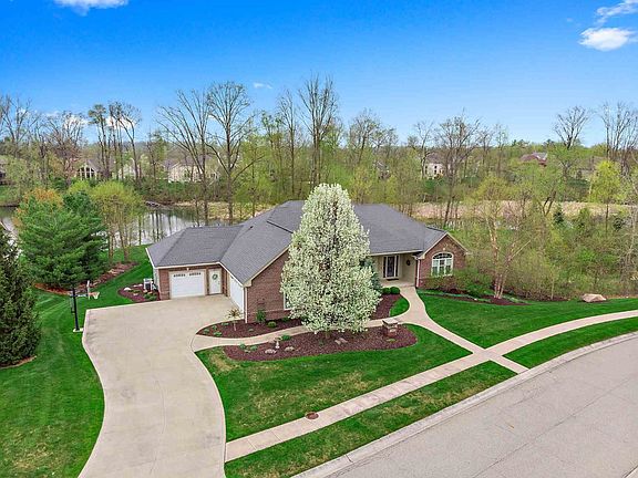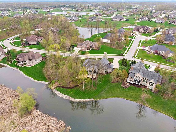 CUSTOM SHOW PLACE on beautiful partially wooded pond setting. Lovely landscape, setting & curb appeal. BRICK front w/LIMESTONE keys. Leaded glass door & side panels. oil rubbed lighting. FORMAL dining w/DOUBLE TREY ceiling, CROWN molding. Spacious Great Room w/2-WAY GASFRPL to CATHEDRAL HEARTH rm. OPEN CONCEPT in kitchen & nook w/tile floors. GRANITE counters, TILE backsplash, GRABILL maple cabinets, gas range oven, convection oven, microwave & dishwasher. Laundry room w/sink. LARGE MASTER w/TREY ceiling, bath with spacious GLASS BLOCK, TILE WALK-IN shower with dual shower heads & DOUBLE SINKS. 2 Guest bedrooms & bath. POWDER room. DAYLIGHT LOWER LEVEL with 4th guest bedroom, exercise room with FRENCH DOORS, CRAFT room & wonderful fully equipped Media Room, WET BAR with dishwasher, microwave, refrigerator & WINE COOLER. Screened porch, DECK & STAMPED concrete patio. IRRIGATION system. Whole house Generac generator. Invisible screen doors, security system. Oversized 3 car garage. Association pool within easy walking distance, proximity to medical, dining & shopping. easy access to I-69 ****Please see list of excluded/negotiable/included items in Documents****