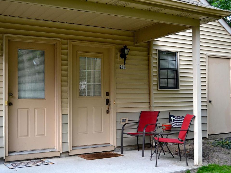 Sought after Astor II model located on cul-de-sac. Entrance is located in off street on wooded court yard. Dining room off kitchen with spiral staircase leading to open loft upstairs. Vaulted ceiling, stained wood trim around windows with matching chair rail and doors. Walk or ride bike to club house and pool.