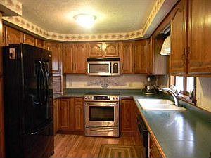 Beautiful landscaping welcomes you to this lovely hillside raised ranch. Great kitchen has lots of countertops & separate eating area. Sliding glass doors lead to a large deck with great backyard views. The full bath has new flooring, lights & vanity. Three spacious bedrooms on the main floor. The finished lower level has family room, half bath and 4th bedroom.