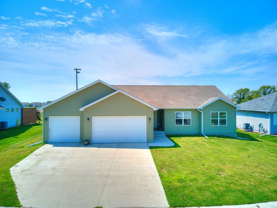 Spacious and inviting. Warm and welcoming. Feel right at home in this 4 bedroom, 3.5 bath ranch with over 3200 sqft finished! Open concept layout with a large living room, kitchen with breakfast bar and bright dining space. Half bath and mud/laundry room conveniently located near entrance to 3 car garage. Wide halls and french doors open into the primary bedroom and en-suite, featuring a double vanity and tile shower, and large walk in closet. Two additional oversized bedrooms and full bath round out the main floor. Finished lower level features large 4th bedroom and full bath, family room and tons of storage. Located near Edgewood Park, softball fields and easy access to High Trestle Trail! All information provided by seller and public records.