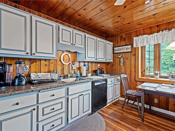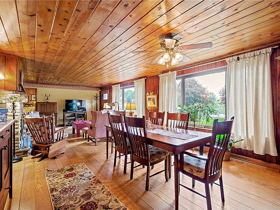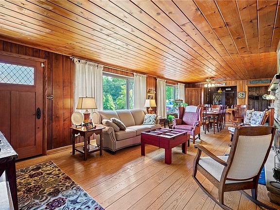 Beautiful stone, 4 bedroom mid-century home on over 1.2 acres. Large living room with fireplace open to dining area. Well equipped eat-in kitchen. Spacious composite deck with access to fabulous back yard. Entry/breezeway connects home to oversized 2 car attached garage. Beautiful oak hardwood floors and solid wood ceilings. 2nd floor master bedroom connects to beautiful full bathroom. Two bedrooms on main level and 2 bedrooms on upper level. Finished basement with large game room with fireplace, bathroom and laundry room.