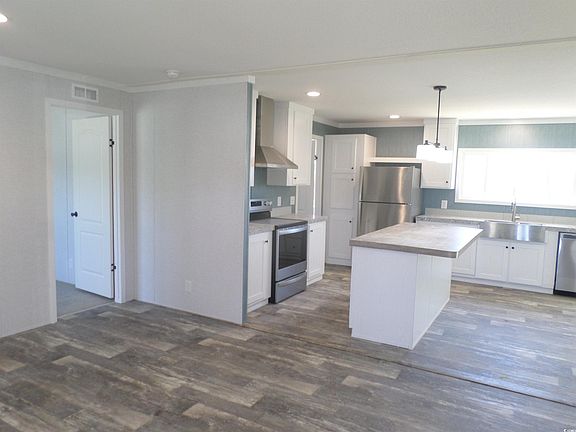 Are you ready to own a huge .35 acreage lot with a NEW 4 bedroom 2 1/2 bath manufactured home?  This beautiful home has just been set up with concrete piers and brick under skirting, a large rear concrete foundation patio deck, front entry stoop and is ready for a new owner.  As you enter the home, you will see a large open living room with ceiling fan which flows nicely into the kitchen with island bar.  Stainless steel appliances, large dual kitchen sink and beautiful dual pane window compliment the layout of the home which is constructed by Fleetwood Homes.  This Summit model has a split floor plan with the master bedroom and walk in closet on one side of the home and three other bedrooms that share a full bathroom.  This floorplan which boasts a hallway half bath is ideal because guests can enter and leave discreetly. Dual sinks in the master bathroom are a convenient addition which allow multiple usage at the same time. This is a great opportunity to own a large parcel of land with a beautiful new home. As you drive up to the property, you will have a two car concrete parking pad and sidewalk for easy access.  Call today for more information and a private viewing.