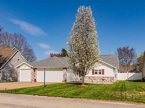 This beautiful open floor plan has 3 Bedrooms, 2 Full Baths, cathedral ceiling, brick fireplace with gas logs, roomy kitchen with breakfast bar, open dining/living area, appliances and washer/dryer, jetted tub and walk-in shower, 3 stall garage, beautiful manicured lawn, mature trees and shrubs with in-ground sprinkler system, covered patio, 10 x 14 shed and has a white privacy fence. All new roof in 2019.