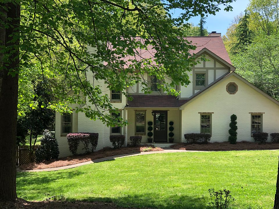 1.39 acre level lot. Completely private fenced back yard features heated pool with jetted spa. Covered porch and screened porch with wired entertainment. Hardwoods, stone fireplaces, granite counters in kitchen and bathrooms. Finished basement with bedroom, full bath, kitchen, fireplace and laundry room. Minutes to 400.