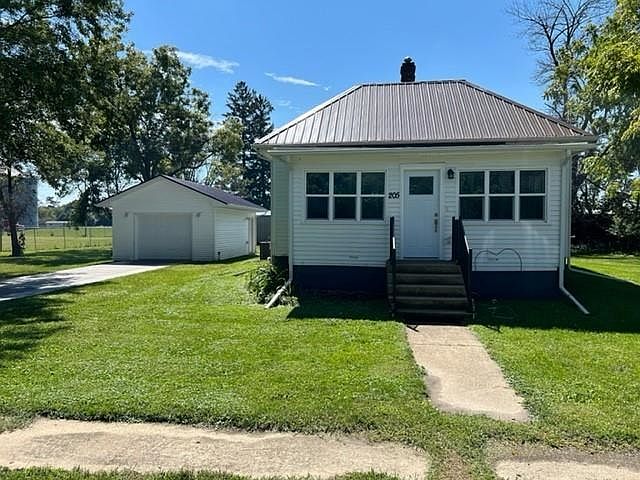 Move right into this nicely updated 3 bedroom, 1 story in Lamont which features newer entry doors, windows, wiring, plumbing, furnace, central air, water heater, bathroom, kitchen cabinets and countertops and more. Newer metal roof. Hardwood floors in the living room, dining room, and bedrooms. 1st floor laundry. Relax out on the enclosed front porch during the cool mornings and early evenings. Appliances stay including stove, refrigerator, dishwasher, washer, and dryer (which are all approximately 3 years old). The seller has added a new 16 x 24 one-car garage and cement driveway since purchasing the home.