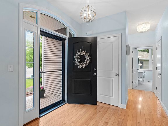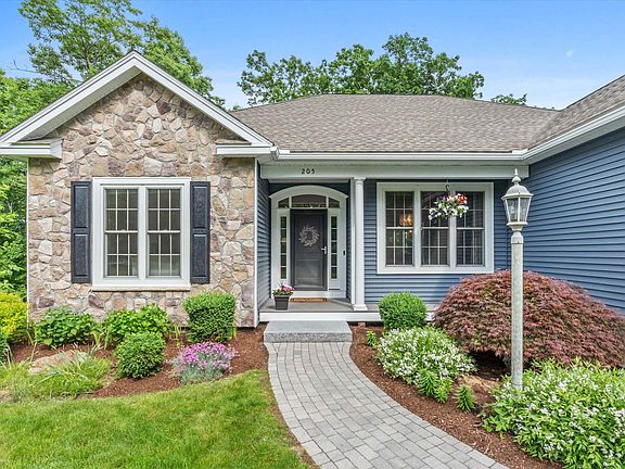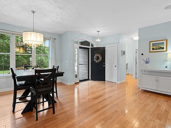 This stunning Ranch style home creates a bright and airy feel with natural light streaming through its many windows. As you enter, you're greeted by a renovated kitchen and open living spaces. The kitchen boasts European-hinged Crestwood cabinetry, a built-in coffee bar, Cambria quartz countertops, and a spacious kitchen island seating five. Enjoy meals in the cozy eat-in kitchen or the formal dining area, both seamlessly connected to the living room featuring a gas fireplace. The primary suite offers a serene sitting area and a luxurious bath with marble countertops, a trough double faucet sink, a tiled shower with a frameless door, and a soaking tub. Two additional generously sized bedrooms share a full bath, while the office, enhanced with additional lighting, sits opposite a convenient powder room. Relax on the extended large private back deck, or make use of the full basement, complete with five full windows and a walkout, equipped with a high-speed furnace, central air conditioning, and a radon air mitigation system. Experience hassle-free living at Woodland Ponds, where landscaping and plowing are managed for you. The modern clubhouse features an in-ground outdoor pool, theater room, exercise room, and tennis courts. Discover all the wonders this exquisite home has to offer!