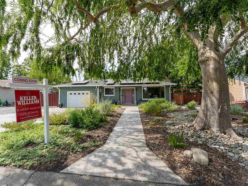 One of the largest lots in Poets Corner! Nearly 1/2 acre with a smaller front yard. Huge potential for building the home and property of your dreams. Beautiful original refinished hardwood floors. Remodeled kitchen and Handicap access bathroom. Freshly painted, new gutters and gutter guards, 32K of owned solar, 2 year old roof, tankless water heater, canal water for watering the yards, whole house fan. Side access for RV or boats . Amazing backyard home vegetable garden with beautiful paths of flowering landscape and mature shade trees. Drought tolerant plants that attract hummingbirds, butterflies and bees. This home is move in ready in one of the most sought after neighborhoods in Pleasant Hill!