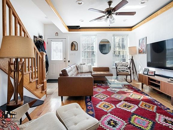 Gut Renovated Condo-Quality Townhouse in the heart of Williamsburg. Don't let this rarely available opportunity pass you by. This beautiful 3 Bed/ 1.5 Bath three story house has been meticulously gut-renovated to the beams and boasts condo-quality finishes throughout including hot water on demand, central air and video intercoms. Walk into the owner's triplex and you're greeted with stunning red oak floors and a striking natural wood staircase that continues throughout the property. The open living area is flooded with sunlight through the brand new lattice windows with White Carrera windowsills and features LED lighting features built into the custom wood molding. The chef inspired kitchen features a wraparound island appointed with White Carrera marble countertops and backsplashes that blend perfectly with the suite of stainless steel appliances. Past the kitchen you'll find the oversized balcony which is the perfect amount of outdoor space. The main floor also features a full bath plus laundry room and the owner's triplex has been constructed with central air and video intercom on every floor. Continue upstairs and you'll find two oversized bedrooms that each have plenty of closet space with another full bath on the second floor and continue to the top level where you'll find a gorgeously done attic that's perfect for your home office or even your extra storage.