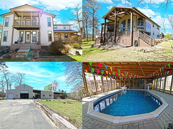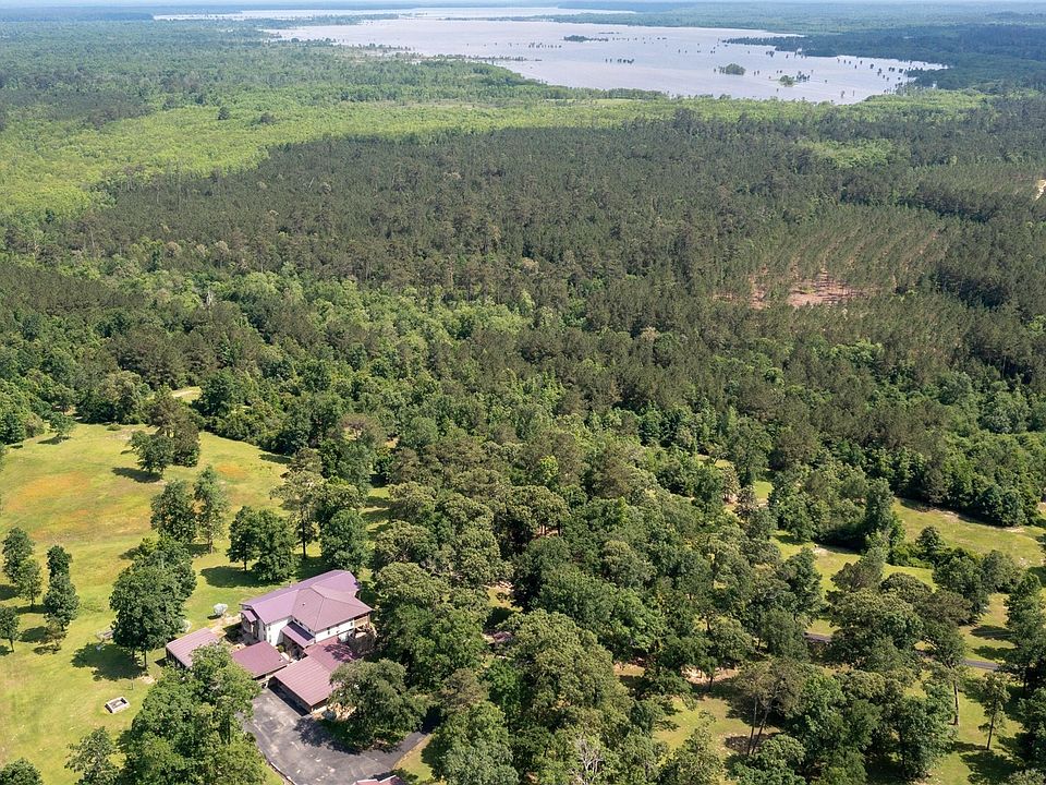 Discover this private and enchanting 55.5-acre nestled along the ranchers, offers unmatched scenic rolling, wooded hills, location make it a perfect choice for a permanent or weekend, residence blends rustic charm. Its graceful living areas are filled with natural light and offer views of the surrounding gardens the home boasts two kitchens, 6 bedrooms, and 6 full baths. all spacious bedrooms have en-suite baths, Numerous porches. 1,300sf outdoor living area offering kitchen, serving bar, island, dining area, full bath, & attached above ground pool & wood decking year -around enjoyment, rooftop solar panels, the screened windows not only invite fresh breezes but also offer picturesque glimpses of the encompassing landscape. across the paved parking area is a 2,200sf metal bldg. offering finished workshop, 60' long canopy & drive-thru 60'x24' garage w/12.5' tall double overhead doors-tall enough for a motorhome. two hours from Houston