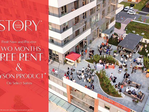 1 Bed + 1 Bath in the Heart of Brampton In the heart of Brampton, discover a new standard of rental living that puts residents first. Beyond simply a place to live, we are invested in the people who share their stories and unique perspectives with the community.*Conditions apply. Offer is applicable to new and approved applicants for select suites only. Incentive is applied as a rent credit or as otherwise determined by management. Offer is limited to select Dyson products. While supplies last. Minimum 12-month lease term required. Offer is subject to change or cancellation without notice and cannot be combined with any other promotion. Conditions apply. Please contact the leasing office for full details and eligibility. Photos, dimensions, and pricing are for illustrative purposes only and may not reflect the exact features or layout of the available unit. Actual units may vary., E O. E.