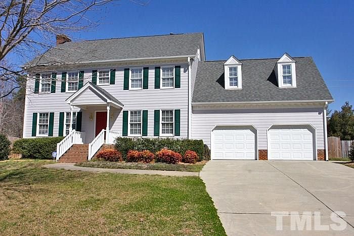This home is just waiting for you to put your personal touches on it! Large Living room with masonry fireplace, formal DR and Kitchen with breakfast area. 4 Bedrooms, 2 1/2 baths. Back stairs lead to Bonus Room with 2 large closets. Walk up unfinished attic is great for storage. Convenient North Raleigh location close to shopping and I-540. Fenced yard with mature trees. Home is in good condition.