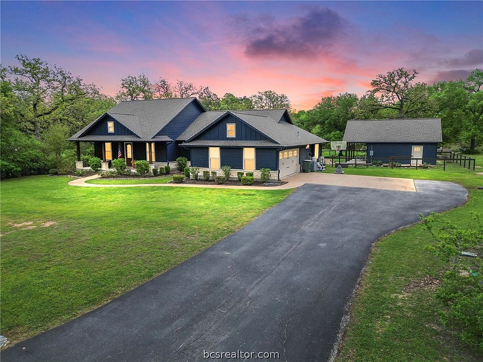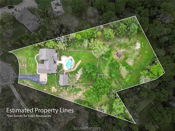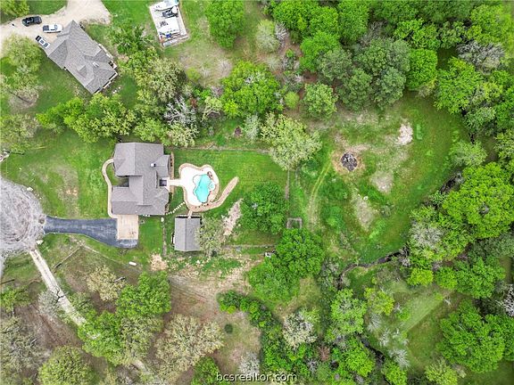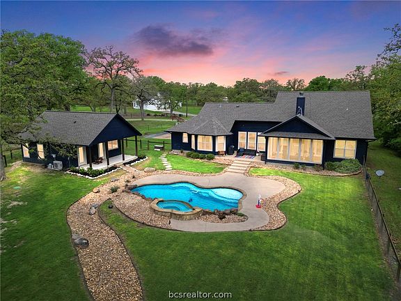 Welcome to your PRIVATE OASIS in one of Bryan's most sought-after areas! Nestled on over 2 acres of picturesque land, this stunning, well-maintained property boasts a modern farmhouse-style home built in 2014, offering a perfect blend of elegance and comfort, county living within minutes of the city. This single-level gem features 3 beds, 2.5 baths, PLUS a bedroom/office/flex room to meet your needs. There is no carpet and the floorplan is a beautifully-organized split design. Inside, high ceilings and an open layout create a spacious feel. The kitchen boasts stainless appliances and opens to living room with a cozy wood burning fireplace. The owner suite includes a large bay window providing lots of natural light, an ensuite, spa-like bath and two walk-in closets - one is an expansive approx. 10'x10' with its own built-in vanity! Step outside to a covered, fully-screened porch connected to the open patio, and in-ground gunite pool and jetted hot tub with landscaped yard, fully fenced from the remainder of the acreage where you can often watch deer grazing. The property also includes a detached guest quarters with an additional bedroom, full bath, full kitchen with stainless steel appliances which offers an open-concept design to the living room. The large covered front porch faces the pool and is inside the fenced area. Additional features include an attached, oversized, side-entry 2-car garage with storage, additional parking in a quaint, cul de sac location. COME SEE!