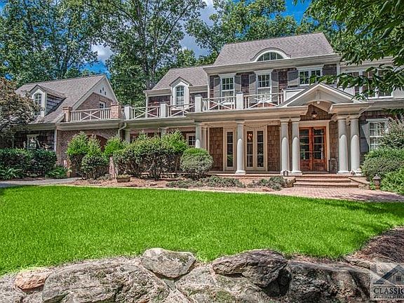 9.73 acres of private woodland on the Middle Oconee river surrounds a home constructed with such singular quality and craftsmanship that it is a shining jewel even amidst other gorgeous homes in prestigious Tallassee Oaks. The interior of 205 Red Oak Trail is distinguished by custom wall finishes and heavy millwork detail combined with reclaimed heart pine floors, travertine tile, and a completely custom chef's kitchen and vaulted breakfast room that is truly magazine-worthy. Touches of Tuscany with a Craftsman influence have created an earthy, comfortable opulence that must be "experienced" rather than "seen." You'll love the intimate, fireside ambience of the keeping room with its balcony access and the adjoining great room graced by a row of French doors spanning the outside wall. A lovely office with built-in bookcases and private porch are also found on the main level, along with a half bath with copper fixtures and an oversized formal dining room with seating for a large group. Upstairs, the oversized master suite includes yet another fireplace and a spa-sized bathroom. Three other bedrooms are also ample in size and include ensuite bathrooms. A full, finished walk-out basement completes the living space of this 7,700+ sq foot residence, and includes another two bedrooms, a full bath, kitchenette area, media room and living room with fireplace, as well as a storage space with garage door. With an abundance of areas arranged for entertaining, you'll find planning events and outdoor activities to be pure pleasure. A covered breezeway with intricate brickwork connects the main residence with the 3-car garage and in-law suite with bathroom and plenty of room above and leads to a deck overlooking an expanse of wooded acreage. Just off the deck, an area perfect for al-fresco dining alongside an oversized fireplace is lit by electric lanterns that wind around the back of the residence, lighting a stone path to the walkout basement. Come and tour this private estate. You'll want to make it your own.