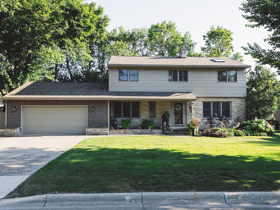 Schedule your appointment today to tour this spacious two-story three bedroom home with a fully equipped gourmet kitchen which includes a double oven, walk-in pantry, warming drawer, large center island and granite counter tops. Other home upgrades include large primary bedroom suite with full primary bathroom, composite decking and aluminum guardrails on the two level deck, new roof and skylights in 2023, washer and dryer in 2020, furnace and air-conditioning in 2015, newer exterior siding with fresh paint in 2020, new roof gutters/ gutter guards and aluminum soffits in 2020, water heater in 2023 and city water service in 2024. Enjoy the open floor plan with kitchen, great room and large deck in the back of this home which has a partial view of Fountain Lake. Tasteful design and decorating was planned with this home which is located near Fountain Lake, municipal pedestrian trail extending around the lake, Shoreland Park and is also near a public golf course.