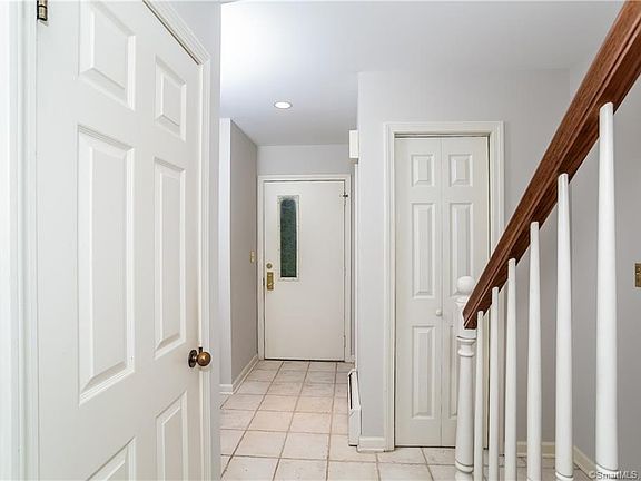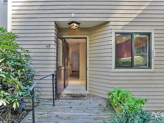 This bright 2BR, 2.1BA tri-level townhome has been renovated & updated in the last few years. Freshly painted (2018, new carpet (2018, new furnace (2018, new hall bath (2016, newer kitchen, new built-ins (2002. Lots of closets. Dining/living rm with fpl & slider to deck with woodland views. Addt'l 500 sf finished walk-out lower level with slider to patio. Tucked away at the end of a cul de sac. Walk to the waterfall, the Mill, restaurants, school, shops & park. A short distance to the Merritt & Greenwich Ave. 1-car garage (with storage & 1 parking spot in front of the unit.