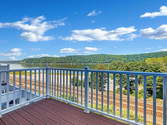 Breathtaking Hudson River, mountain and marina views from this Hudson Pointe bright, light-filled townhouse style condo. This one shows like new, with open floor plan featuring kitchen, living room and dining area with deck overlooking the river. Gas fireplace, hardwood floors, granite countertops, crown molding, updated kitchen. Second floor master bedroom suite with walk-in closet, luxurious master bath...lie in bed and watch the sailboats float by. Second bedroom and full bath. A loft is located on the third floor, ideal for additional guests, office, studio, etc. Bright finished lower level walks out to spacious second deck. Enjoy this carefree lifestyle offering clubhouse with exercise equipment and pool. No need to bring a snow shovel...all of that is taken care of for you, right up to your door. Take a short walk to the river front and enjoy a cocktail at Shadow's open air bar. Boating enthusiasts will enjoy the convenience of walking to the marina. Super convenient to Metro North, local hospitals, colleges, shopping. Gated community, need gate code to enter. Note that although there are four levels to this unit, all living could be done on two.