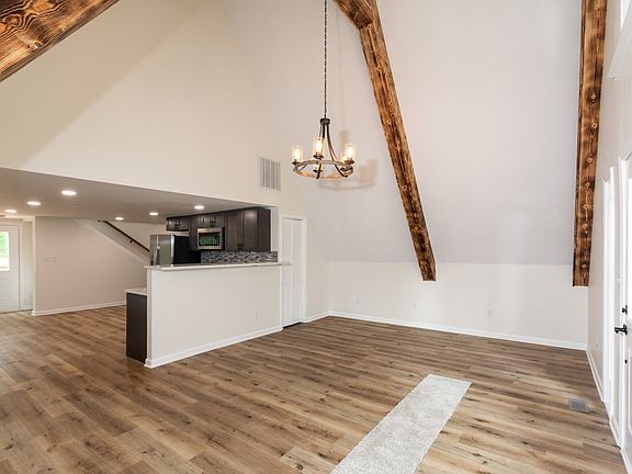 Come see this gorgeously remodeled A-Frame on a new foundation! Once inside you'll be wowed by the soaring vaulted ceilings, exposed beams & open concept of the 2 story great room. Follow the new hardwood floors back to your new kitchen boasting quartz counters, SS appliances, shaker cabinets & custom backsplash. Choose between an upstairs primary bedroom retreat or a primary bedroom on the main. Both showcase a beautiful en-suite bath & walk-in closet. The bathrooms feature custom tile showers, new floors, & luxurious vanities. Relax on your front deck or your private spacious backyard on your back deck just steps away from the park! Enjoy these new renovations for years to come! Special financing available.