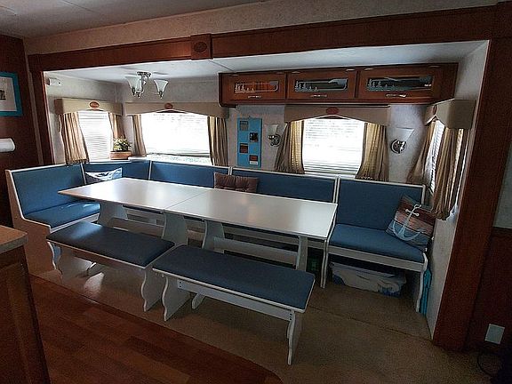 '07 Hy-Line Park Model Camper w 4 bump-outs & attached sunroom in Cape May Court House. Very quiet, no neighbors on 3 sides. Sleeps 8-10. Under 20min drive to Stone Harbor, Avalon, Wildwood, Cape May Lots of storage, stainless steel appliances, propane cooking, sewer-connected toilet. Separate ACs in sunroom and camper. 2 BR incl a master and 4 bed-bunk rm. Incl most indoor furniture, TVs/DVD, kitchen items, small appliances, linens and beach decor. Elec mower, weed wacker, grill, bench, 8 adirondack chairs, and 3 Stone Harbor/Avalon 2022 beach tags also included. Located at King Nummy in Cape May Court House, just 2 min from DE Bay. Seasonal fees are 4860.00 and runs 4/1-10/31. 2022 season paid in full. Call for more info or to set up a showing. Serious inquiries only please.