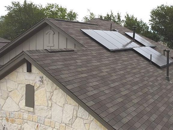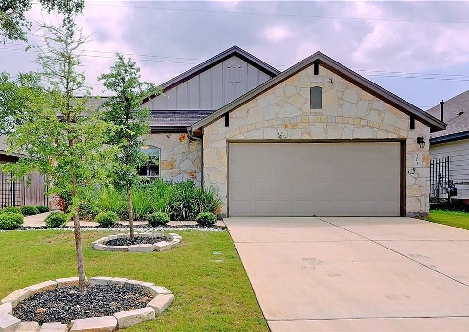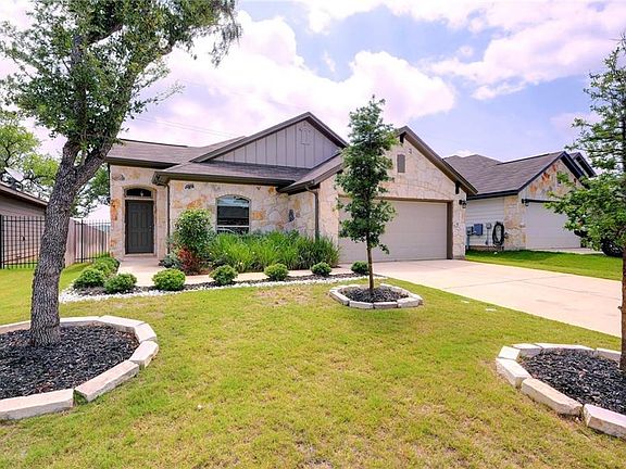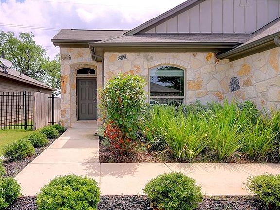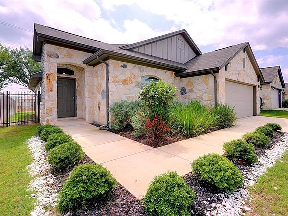 Open floor plan with tons of upgrades including paid-for solar panels, granite counter-tops, upgraded hardware, recessed lighting, covered patio, window treatments, and MORE! Warm wood-look flooring throughout the home; no carpet! Almost new Leander home with a beautiful view of the greenbelt behind and less than 5 min walk (0.2 mile) to new Larkspur Elementary. Awesome Larkspur Amenities Center & park close by! **Please contact agent for showing!**