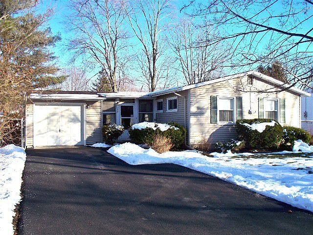 Affordable, Three Bedroom, One Bath Ranch Home with great curb appeal. Features a large living room with hardwoods under carpet and large picture window overlooking the back yard. Nice Kitchen with natural wood cabinets and a large eat-in area. All appliances stay. The bathroom has ceramic tile on walls and floor. There is a bonus room behind the garage storage area which is ideal for a man cave. It features its own gas wall heater. The Sun Room, located between the house and garage area, is fantastic for relaxation and summer time enjoyment. The yard is fully fenced and great for little ones and pets. The garage can be easily restored. The house has newer mechanical including roof, furnace and replacement windows. The drive way has been replaced and the foundation parged with a new entry into the crawl space. The home has low maintenace vinyl siding. Some cosmetic upgrades might be dersired. Great home to qualify for the $8,000 Tax credit for first time buyers.