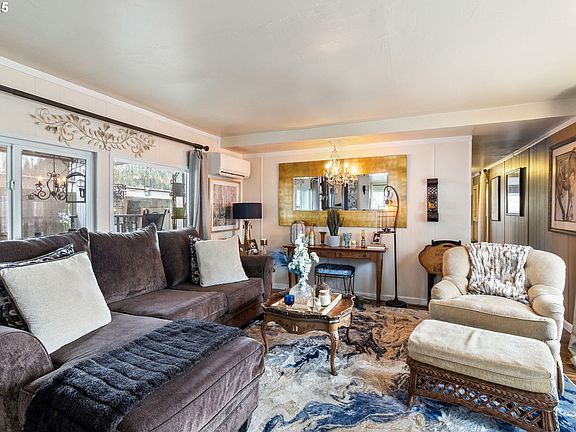 Welcome to this stunning, professionally designed 2-bedroom, 1-bathroom manufactured home in Chalet Village, a vibrant 55+ community full of amenities. Built in 1974, this home has been completely remodeled with modern finishes and high-end upgrades, blending timeless charm with contemporary luxury. Step inside to enjoy an open living space with beautiful new flooring, fresh paint, new walls with added insulation, and stylish tile countertops. The ductless mini-split system provides efficient heating and cooling with low electric bills. The bathroom has been thoughtfully updated with a new toilet, stone flooring, and upscale, spa-inspired touches. Now offered at just $50,000, this charming home is an incredible value. For only $5,000 more, you can make this truly move-in ready - purchasing it fully furnished, professionally curated by an interior designer, includes nearly everything you see—from the dining table and chairs, cozy couch, electric fireplace, Lexington sofa back table, accent chair and ottoman, tasteful wall décor, and two queen beds—including one brand new. Every detail has been carefully selected to create a refined, move-in-ready retreat. Step outside to your own private oasis on the front porch with lighting and curtains—ideal for relaxing or entertaining. The landscaping is meticulously maintained with decorative river rock, and there’s a covered carport with a storage shed for convenience. Chalet Village offers a welcoming, connected lifestyle with a recreation center, dining hall, billiards room, sauna, and seasonal pool. This home is perfect for someone relocating or seeking a fresh start in a peaceful, low-maintenance, and luxurious environment. Space rent is $1,015/month; buyer must be approved by the park. Be sure to check out the 3D walkthrough and schedule your private tour today!