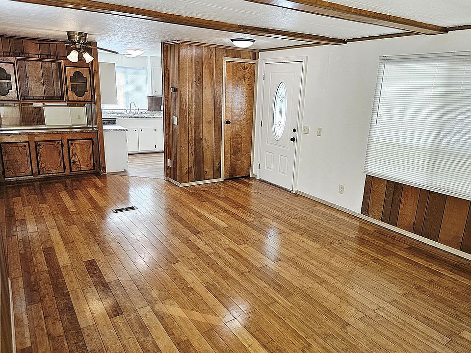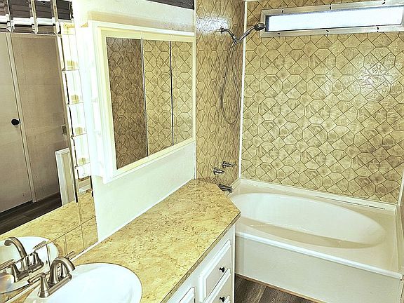 Modern sink and faucetUpdated countertopsSemi-private covered porchWaterproof vinyl plank flooringLarge windowsTwo-car drivewayReal hardwood floors