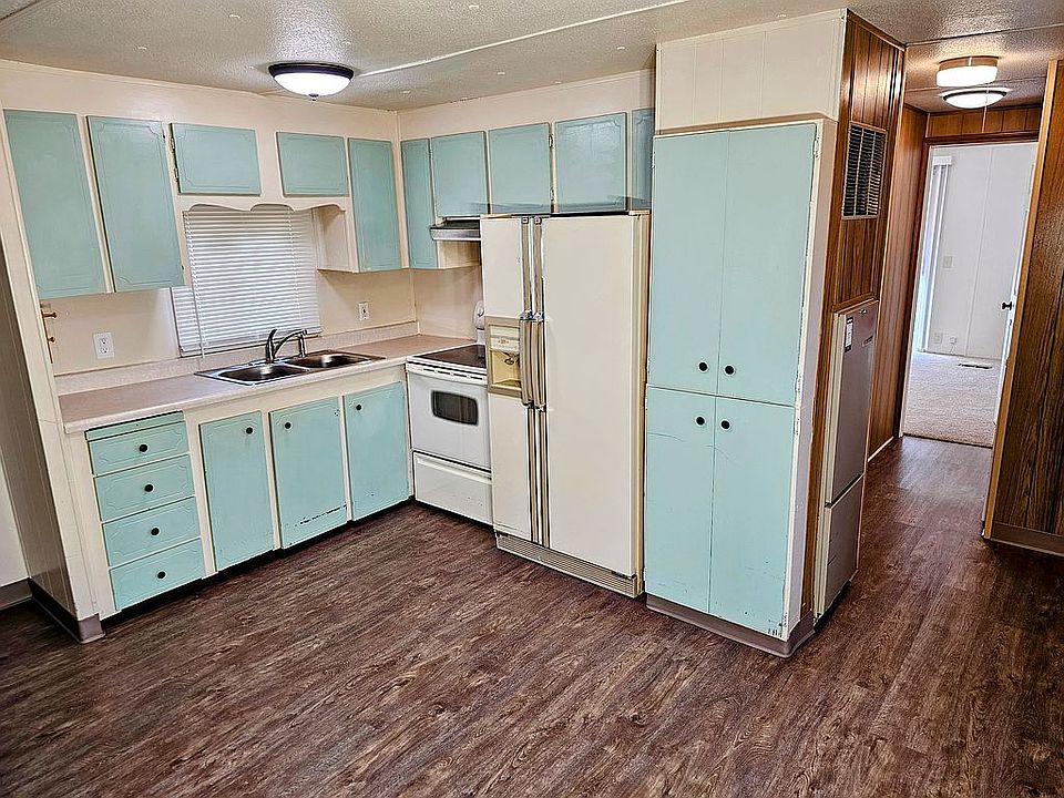 This house feels like home and is move-in ready! This 2 bed 1 bath 840 sqft home has a great layout with bedrooms on each side of the house making it perfect for roommates, family visits, or office. The master bedroom has a sliding back door to your private backyard deck (no neighbors behind you)! The yard is already fenced and ready for your park-approved fury friend! The kitchen is open with a cute breakfast bar separating the dining area from the living room and there are A LOT of storage areas in this house! Speaking of storage, this home comes with 2 large sheds (wired with lights) that would be great for a small shop(s) or perfect for storage! There is also a separate carport shed on your 2-car driveway! This Home Includes The Following Amenities: Interior: New plush carpet in both bedrooms Waterproof flooring in the remainder of the house New Faucets and kitchen sink. New matching door handles and cabinet hardware throughout. New Toilet Walk-In Shower and support handles in the Bathroom Energy Efficient Windows. New Energy Efficient Light Fixtures Throughout. New Blinds on all windows and sliding glass door. Washer and Dryer included The main bedroom has a sliding glass door to the private backyard deck. Exterior: Fully Fenced Yard (great for dogs and kiddos)! Covered Front Deck 16’ X 7 ½’ (great view of the mountains and trees)! 10’ X 8’ Private backyard deck off of the main bedroom. Large Barn-Style 10’ X 12’ Tough Shed (wired with electricity). Metal Shed 7 ½’ X 10’ (wired with electricity). Both decks, sheds, and mobile home have new paint! Chalet Village Park Benefits Include: Clubhouse with fully equipped kitchen, dining hall, television lounge, library, and puzzle room. Pool Tables. Seasonal swimming pool and saunas Coin-operated laundry facility Pet Friendly Give Roy a Call Today to set up an appointment to view this home While It’s Still Available! *Space Rent at Chalet Village is $850 per month and is not included in the purchase price.