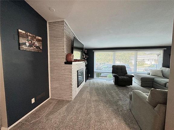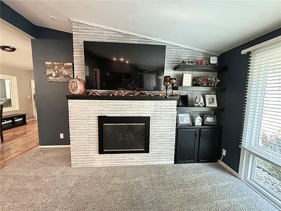 Spacious mid-century modern 4 bedroom, 2 1/2 bath home with tons of Charm! You will fail in love with the Vaulted ceilings, hickory floors, gas fireplace, and floor to ceiling windows! Oversized master bedroom with private covered deck and two closets. Both main floor bathrooms have been update. Basement has workshop, family room, laundry room, and half bath. Fenced in backyard is amazing with covered flagstone patio, storage shed, and lots of privacy. New HVAC and water heater. A Must See!!!!