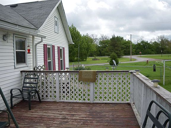 Find comfort at home in this cozy 2 bedroom ranch. Enjoy quiet nights out on the deck while the kids run around in the fenced in yard or spend time working out in the 2 car garage. This home offers a kitchen/ dining combo, large living room, den/ 3rd non conforming bedroom, and laundry area. Natural wood work, sliding doors, newer windows and roof as well as sump pump, furnace and water heater. This home sits on a large corner lot on the edge of town with plenty of room to grow.