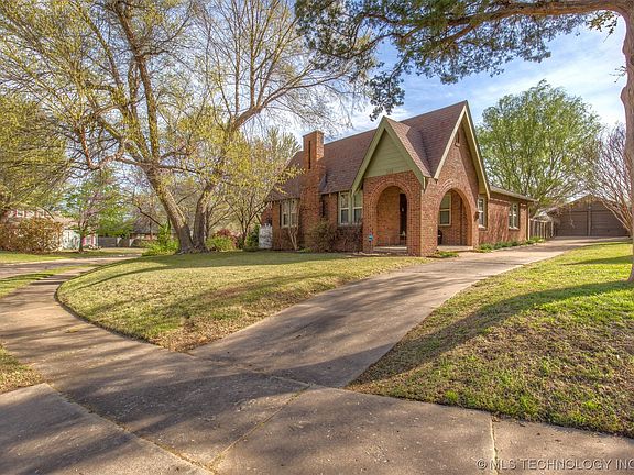 Multiple offer deadline: Saturday April 15th at 12:00 noon. Wonderfully maintained 1930s Bungalow in University Park! Comfortable and cozy Santa Fe vibes in this unique Midtown charmer. Walking distance to TU, Kendall Whittier, and Tulsa Farmer's Market. Beautifully refinished original hardwood flooring, historic architecture, all new exterior paint, covered front porch, unique original front door, plantation shutters, formal dining area with vintage stained glass, newer interior paint, freshly glazed original bathtub with 5-year warranty, and surprisingly big bedroom closets. Large backyard with deck and pergola, fully fenced for dogs/kids, all new double-pane vinyl windows in almond color finish from Thermal Windows in Tulsa, and large 2-car detached garage. All new ductwork! All appliances stay. Close to TU, Route 66, downtown, Cherry Street & easy highway access.