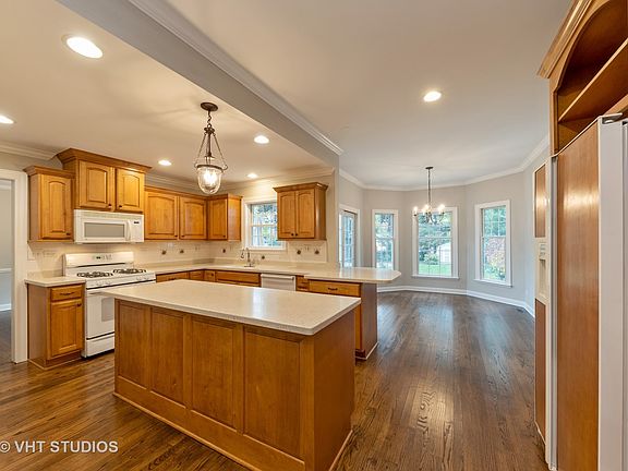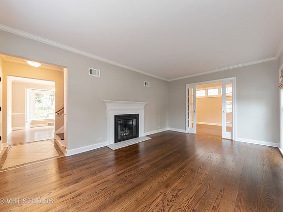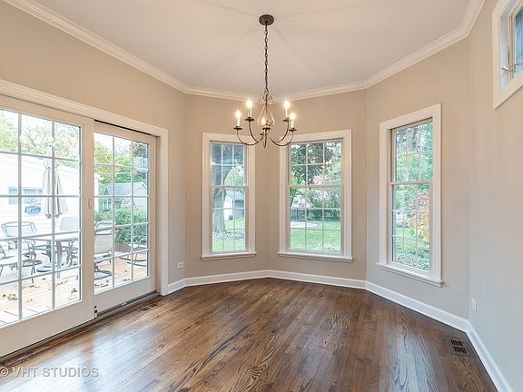 Sparkling Georgian in the triangle area, where neighborhood pride is reflected in the well kept homes. Charming living room highlighted by fireplace, floor to ceiling windows and french doors; View the garden through the bay window in the bright, modern dining room. A well planned kitchen boasts an island, tons of counter space, storage galore plus sun drenched breakfast room with sliders to the deck and yard, a place where everyone can sit down and eat together. Open concept family room right off the kitchen with built ins and french doors, a perfect spot for family fun and entertaining. Second level with king size master bedroom, second bedroom with built ins & study alcove, third bedroom and full updated bath. Expanded basement with radiant heat, rec room, office, bonus area, full bath, extra closet space and laundry room including a washer and two dryers, plus storage area. Scenic park like yard with composite wood deck, basketball court, tire swing, shed and garage with storage area. This home is walking distance to the train and downtown Mount Prospect with all it has to offer.
