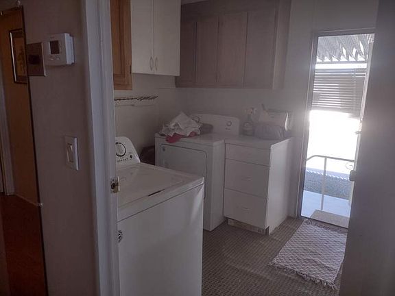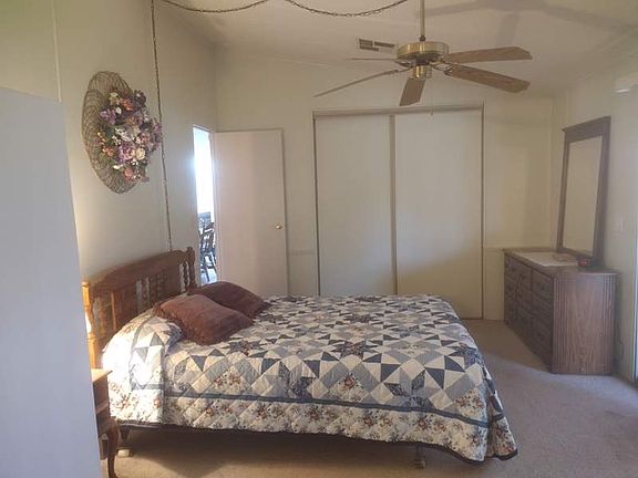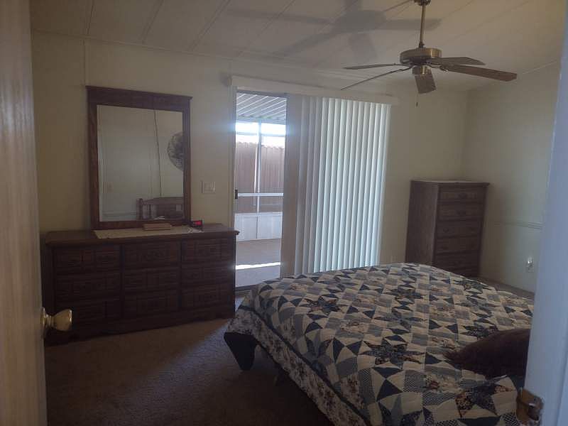 2 bedroom 2 bath corner lot ! All furniture and kitchen supplies are included. Light and bright living room with wood burning fire place. Spacious open kitchen with plenty of storage and counter space. 2 full bathrooms. Master bathroom has garden tub and walk in shower. Laundry room with full size washer and dryer. Large shed is included. Screened in Arizona room with access from the master bedroom. Home is equipped with handicapped access. The rail on the outside porch is removable and the ramp pulls.