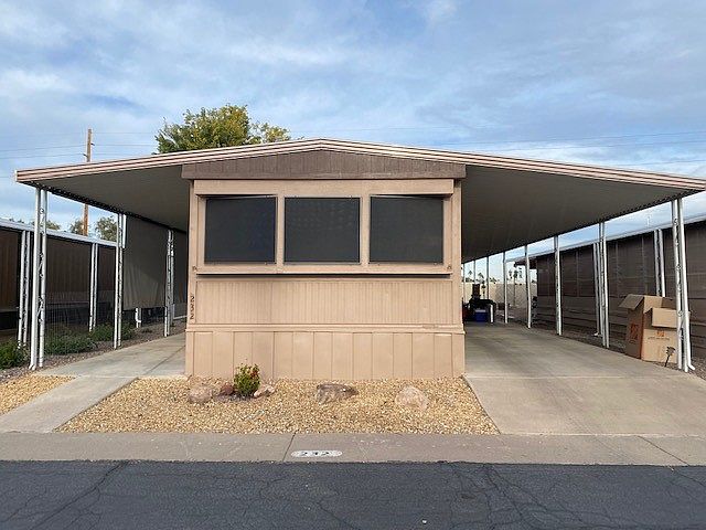 This lovely home features 2 bedrooms and 2 bathrooms. Large eat in kitchen open to living area with a beautiful wood ceiling sure to delight! Owners bedroom has his and hers closets. Backed up to canal offers great views of Superstition Mountain. Large shed for storage or work shop. Don't let this home slip by - make an offer today.
