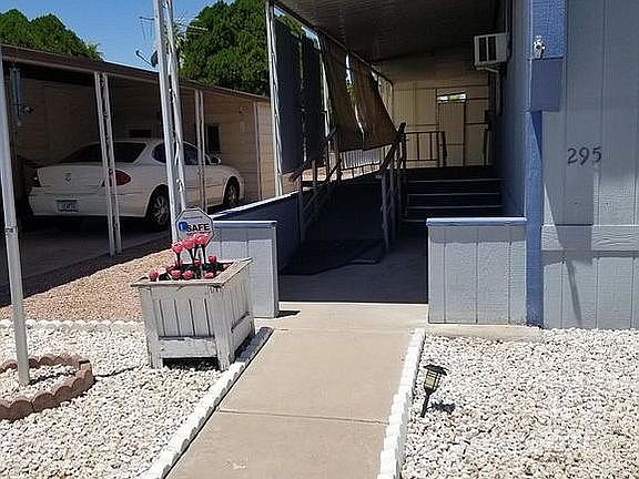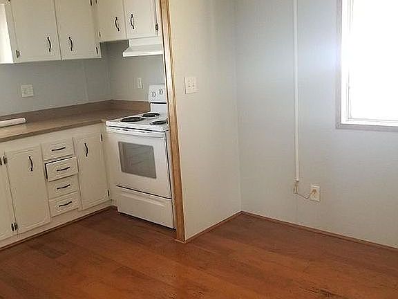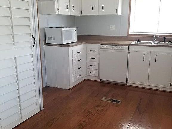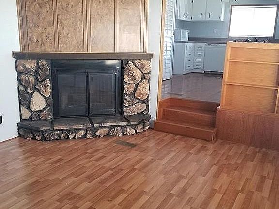 2 bedroom one bath. Skylight in bathroom working fireplace. 55 plus community’.