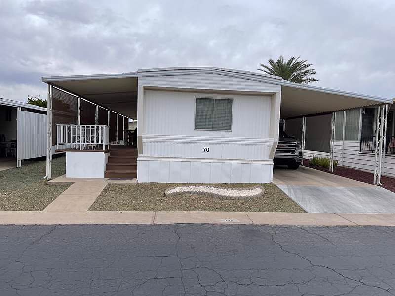 Beautiful big 14 wide single wide. Well maintained home 3 patios quiet park. Open kitchen split bedrooms. Most furnishings included. Great house wont last. Come see this one today.