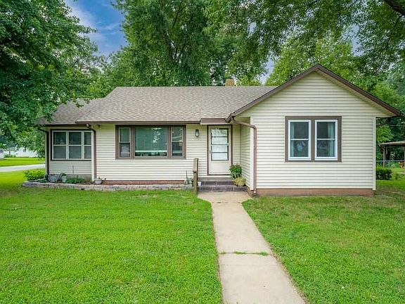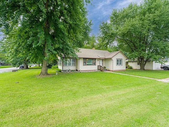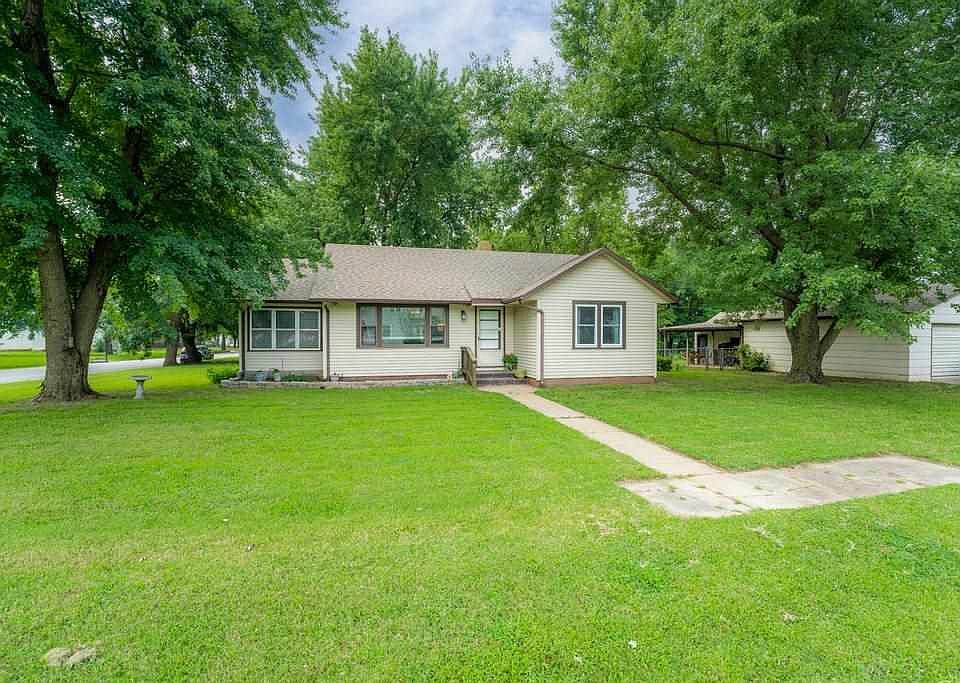 If a small town move-in ready home with character is what you've been searching for, you've found it!! Situated on 1/3 of an acre (FOUR city lots!!). Original hardwood floors throughout most of the home. Split bedroom plan: one with LOTS of windows and natural light - the other two ... one with an oversized closet and a built-in style dresser - and the other with a walk-in closet. Spacious living room, formal dining with built-in style hutch - and broom closet! Ample cabinet space in kitchen, yet room to add more (or a pantry). Huge family room in basement-currently being used as fourth bedroom- has a decorative fireplace. Nice storage space in basement. Updated electrical panel, new roof in 2015. Newer windows in the home - with the exception of the 3rd bedroom. Fenced yard, sidewalk from home to garage. 24x24 two-car garage PLUS an attached 1-car 14x20 garage. Nice covered patio attached to the garage paired with mature trees make this the perfect home for outdoor entertaining. Plenty of room for a pool should your heart desire. Clearwater offers an aquatic center, city park, jogging path, fishing pond, golf course and so much more!