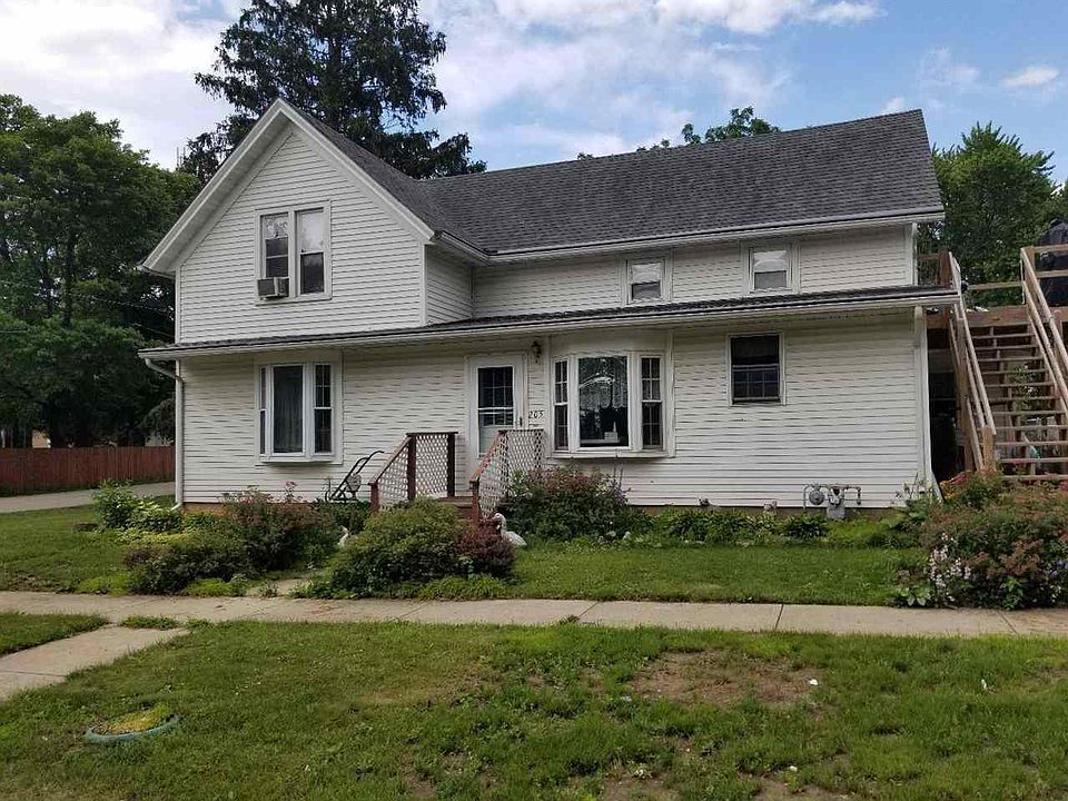 Located on a corner lot, this unique home can be purchased as a single family or duplex. The upper level has a full kitchen. There are 2 garages, a 1 car with access from alley and a 2 car with a shop, gas heat and electric and asphalt drive directly behind the home. The chain link fence is less than a year old. An addition was added to the kitchen approx. 20 years ago to make it a very large room. Roof 5 years, furnace and central air 5 years. Soffit and gutters on 2 car garage 1 year, steps and upper deck 2 yrs. All windows, except 1, are 3-5 years and tilt out. Partial unfinished basement with root cellar has extra room. There is a toilet to add a bathroom as well. Garage sizes approx. 23' X 70' and 10' X 11'. The upper level is still occupied by a relative. The main level is cluttered as there is a sale pending. Better pictures to follow after sale. A must see property. 24 hour showing notice. Home warranty offered.